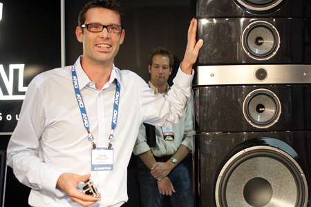 is Raphael Triomphe, project manager for the new Focal Utopia speakers. He stands next to the massive Utopia EM ($180,000 per pair).