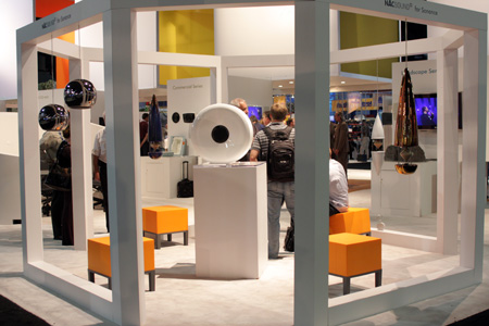 where the company displayed prototype omnidirectional speakers -- those hanging cones and