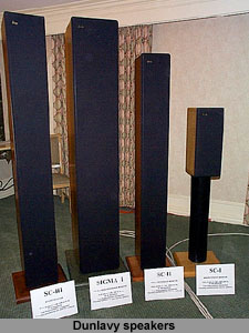 Refreshed with food and drink, I walked the floor looking for familiar faces. Richard Vandersteen was there and tapped me on the shoulder. Before the Show we had discussed a demo of the Roger Waters Amused to Death Q-Sound CD. This demo was particularly interesting because Q-Sound relies on manipulation of the audio signal in the time, frequency and phase domains to achieve spatial tricks through two speakers. These effects can usually only be duplicated in discrete surround-sound systems. Because of differences in speaker designsthe number of drivers used for each frequency range, crossover slopes, physical and/or electrical time alignment (or lack of), the arrangement of drivers, the radiation pattern of the speaker, etc.different speakers will reproduce the Q-sound effects differently. In the Vandersteen suite for this Q-Sound demo were the Vandersteen 5 speakers (approx. $10,000/pr), a design that has near-perfect time and phase alignment, as do all the Vandersteen speakers. Driving the 5s were the Quicksilver V4 mono tube amps, a KT-88 design with 120 watts per channel selling for $3,800/pr. These amps feature very low phase shift from the bass to treble, with the bottom and top octaves starting to get into some phase shift. Since the Q-Sound effects are mostly midrange effects, these amps are fine mates for the Vandersteen 5 speakers in assembling a system that is essentially time and phase perfect for evaluation of what's going on with Q-Sound effects. The 5s reproduced the opening dog barks (track 1) with amazing precision, far behind the listeners right earthats right, BEHIND the listeners head from two speakers. Other systems I have heard this track on put the barking dogs in many locationsfrom behind the front speaker to various locations to the right of the listener. But only with time/phase correct speakers driven by a low-phase-shift amplifier is the dog-barking effect reproduced far behind the listeners head. What does this demo have to do with listening to normal stereo music? Q-Sound is an extreme example of how time/phase performance affect the listening experience. In real-life music, the effects are not as obvious, but you get to know and understand them when you have long-term (years) of listening experience with time/phase correct speaker designs. Of course we listened to a variety of other music. The room acoustics made the soundstage seem smaller than it should, but the tuning of the bass was obviously excellent. The Vandersteen 5s have numerous "poles" in the bass circuit that are individually tuned to make bass response linear after positioning the speaker for the best midrange/treble performance. This means that you dont have to position the speaker for the best bass response then live with whatever you have for mid/treble performance. You maximize mid/treble performance though speaker positioning, then the dealer measures bass response with a special "computer." The bass in the Vandersteen suite was notable for having fewer dips and humps than you are used to hearing in other rooms at the Show. Bass drive in the 5s is provided by dedicated 400-watt bass amps. So the Quicksilver monos were not providing the drive for the deep bass, and this makes the main amps sound even better than they would if they were being driven full range. The 5s employ a unique solution to getting exemplary bass performance from any combination of room and amplifier. Nobody else does the bass this way, and Vandersteen received a 1998 CES Award for Design and Innovation for the work on the 5s. Friday CES Day 2 Friday AM there was another breakfast meeting and another breakfast at the restaurant in the Hard Rock Casino. By now the hostess was nearly a member of the SoundStage! crew! We had a complex schedule Friday, and its a wonder we kept to it as well as we did. First stop for me and a few others was the Dunlavy suite next door to the Alexis Park at the St. Tropez. We put in some extended listening to two different Dunlavy speakers, especially the new $7,995 Sigma-1 speakers. John Dunlavy himself was there, and seemed surprised to see so many SoundStagers traveling in a pack!