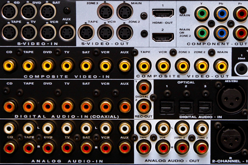 audio datastream: eight HDMI, seven coaxial (RCA), three optical (TosLink), and one