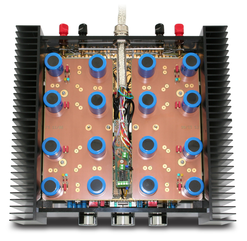 Each side panel of the main amplifier is a massive heatsink. Despite