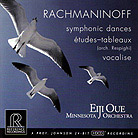 The other pieces on this CD owe their existence in orchestral form to Serge Koussevitsky. It was Koussevitsky who urged the composer to orchestrate the Vocalise and who suggested some years later that Rachmaninoff choose five Études Tableaux ("Picture Studies") to be orchestrated by Ottorino Respighi. Respighi transformed the piano scores of the Études Tableaux, creating his own, quite magical visions rich in drama and color, declaring what is merely suggested in the originals. And although Respighi may not always adhere to the spirit of the original, his music is always rich and wonderful in its own right. Curiously, it almost seems as if Rachmaninoff were thinking in orchestral terms when he composed the Études. Eiji Oue and the Minnesota Orchestra handle this music with impressive conviction and precision of spirit. They evoke a thoroughly convincing sense of the majesty and vastness of the Symphonic Etudes, the idiosyncratic drama and beauty of the Études Tableaux, and the romantic longing of the Vocalise. These are performances which capture what the music is really about -- particularly in the Symphonic Dances. Other versions I know, such as Yuri Temirkanov's (RCA Victor 09026-62710-2), lack the energy, excitement, the involvement, and conviction of Eiji Oues performance. Reference Recordings CDs have a well-deserved reputation for sonic excellence. Keith Johnsons engineering, mastering, and production have, in this case, produced an HDCD that is quite simply the finest orchestral recording I have ever heard. It is instantly among that handful of CDs I will carry with me to audition sound systems, or that I will play to show off my own. The sound stage is deep and wide and precise, the orchestral voices articulate and spacious, the dynamic range is full and rich with nuance, and the timbres of the individual instruments stunning in their approach to live music. I know of no other orchestral recording that conveys with equal conviction a sense of being in the actual venue while the music is being made. Listening to this recording is one of those exultant musical experiences that will remind you why you got into the audiophile game in the first place -- to hear great music reproduced in a realistic manner. This is one disc that delivers on that promise both musically and sonically. GO BACK TO: |