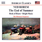 Ned Rorem is an American composer and essayist who was born in Richmond, Indiana in 1923. Rorem is as well known for his candid diaries as for his musical endeavors. He has written 14 books, composed three symphonies, four piano concertos, six operas, ballets, theatre music, and hundreds of songs. Time Magazine has labeled Rorem "the worlds best composer of art songs." The three pieces of chamber music featured here were composed fairly recently. Rorem wrote End of Summer in 1985, Book of Hours in 1975, and Bright Music in 1987. His music is a blend of almost meditative tone poems with storms of turbulent virtuoso playing. Moods change rapidly from tranquillity to fury and back again. Although the music seems to be very modern in style, there are also traces of traditional music, with touches of Brahms and Chopin. End of Summer begins the collection with a three-movement piece composed for clarinet, violin, and piano. The first movement, "Capriccio," combines intense violin solos with intervals of reflection. I felt almost worn out when at last I reached the second movement, "Fantasy," which gave me a much-needed lyrical rest. The piece ends with a movement called "Mazurka," which refers to the old Polish round-dance that is reflected in this finale. The second piece, Book of Hours, for flute and harp, is made up of eight movements named after the different hours of the day for Christian prayer. The music is quite meditative and restrained, but incorporates enough imagination to draw the listener from movement to movement without fatigue or restlessness. The CD ends with Bright Music, a suite for flute, two violins, cello and piano. Here we return to intensity that borders on unease. In the opening, "Fandango," the mood is immediately set in what appears to be an almost furious race of instruments, leading into an almost appealing French waltz, and then its back to the races. The ever-changing pace continues for over 21 minutes until at last it reaches the final movement, "Chopin," a fantasy on Chopin's B flat minor Piano Sonata, which would have left Chopin straining for breath. The performances of the British chamber ensemble, The Fibonacci Sequence, seem consistent throughout. The recording is quite good also, providing ample focus on individual instruments without losing the cohesiveness of the ensemble. GO BACK TO: |