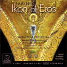 "Music already exists. Its all been given to us by God It was breathed into the mouth of man by God " " its all about longing." -- Sir John Tavener These words, by the composer of this truly extraordinary work of art, go much farther in explaining what is on this disc than I have any hope of doing. Although Tavener may be right in saying that divine beauty is out of our reach, what he has created here is so profoundly beautiful that a review is akin to describing Monets paintings of "Waterlilies" rather than viewing them in person. It is bound to come up severely short. John Taverner has been composing music for over three decades. He first gained popular acclaim when he composed and performed a piece called The Whale that drew the interest of a group called The Beatles, who later recorded it on their Apple Records label. However, it was his conversion to the Orthodox Church in the late '70s that has shaped his music, and made him the composer he is today. Tavener has described how his works became "icons with notes rather than colors." The primary purpose of ikons in the Orthodox Church is to enable people to see what is normally unseen; to give evidence of things hoped for. It is this striving or longing to make the elusive intangible beauty of divine love more opaque that Tavener presents in his Ikon of Eros. The work is scored for five groups of performers: solo violin, solo soprano, and dholak (a double-headed drum); Greek psaltist, mixed chorus, and very large Tibetan temple bowl and very large tamtam; two flutes, two oboes, two clarinets, two bassoons, small Tibetan temple bowl, very large tamtam, and dholak; four horns, four trumpets, three tenor trombones and bass trombone, large Tibetan temple bowl, and very large tamtam; medium Tibetan temple bowl, very large tamtam, dholak, and strings. This unusual arrangement was temptation enough for my curiosity. Ikon of Eros is formed from four movements leading the listener on the quest for Divine Eros. Soloists Tim Krol (baritone), Patricia Rozario (soprano), as well as a large chorus sing key words in Greek: Metemorphothes (Transfigured), Eros (Divine Love), Ekstasis (Ecstasy), and Alliluia (the unending song of Angels). Playing almost constantly is a solo violin, representing Divine Eros itself and played by Jorja Fleezanis. What follows is an experience equally spiritual and musical in nature. Male and female chorus members provide a sonic background out of which the chants of baritone, Tim Krol, and soprano, Patricia Rozario, speak of the aspects of the divine spirit. Their voices are equal to the task and are perhaps only upstaged by the incredible playing of violinist, Jorja Fleezanis. Not only is her playing of the highest quality, she maintains incredible stamina, as the violin plays almost nonstop for the entire 60+ minutes of the piece. The tempo of the music changes frequently, illustrating love that at times may be almost austere and at other times ecstatic. In the second movement an ethereal female chorus is suddenly punctuated by deep percussion instruments and gives way to an almost erotic middle eastern beat, contrasting a pure spiritual love with a more physical, sensual form. The variety of unusual instruments perfectly complements the unique nature of the piece. Because of this unusual assembly, the listener may at times be unsure exactly what he/she is hearing, but that does not blunt the effectiveness of the work. The recording, a world premiere of this piece, is beyond reproach. Individual instruments are distinct and float in space. By his own words, Tavener recommends that the piece be played in a resonant acoustic. He could have not asked for a better place. The voices echo slightly off of the walls and ceiling creating an even more metaphysical feeling. I dont think Ive heard a better piece to test your soundstage. There is little else I can provide. Tavener says Ikon of Eros is "humbly offered to those who have ears to hear." I suggest you take him up on it. GO BACK TO: |