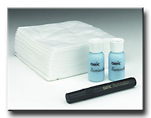 There are probably a half-dozen or more different surface-treatment products for CDs and DVDs out there in high-end-audio land. You have to wonder how many of these products the market can or will support. I was a bit surprised to hear from the manufacturer of the Auric Illuminator system, Audience, about their product. It has been about two years since I last tried a new CD/DVD surface-treatment product, so the timing seemed to be reasonable. Besides, Audience was claiming that the Auric Illuminator produced more beneficial sonic improvements than other products, and that's a claim worth testing. The $39.95 kit includes a number of all-synthetic polishing cloths, two small squeeze bottles of Auric Illuminator surface-treatment gel and an edge-marking pen, which is to be used to paint the outer and inner edges of CDs and DVDs. My opinion of edge pens for CDs has waned over time. Years ago, I thought I was hearing a consistent improvement after painting edges with green pens, but the improvement was elusive at best and non-existent many times. As time went on, I noticed that there were lots of things you could do to make more obvious improvements that you could also get from edge-marking pens. What really hacked me off was learning that the used CD stores would not take my green-penned CDs in trade. The Auric Illuminator gel has the consistency of hand cream -- thick, creamy and slippery. Audience recommends treating both sides of each CD to minimize static buildup. You place two drops of Illuminator on one surface and smear it around until you cover the surface uniformly with the Auric gel. Then buff it off with one of the cloths. Audience claims that one kit will treat 200 to 400 CDs or DVDs, which comes to 10 to 20 cents per disc. Listening to audio CDs I did some testing to find out if the Auric Illuminator system did more than the other surface treatments I had on hand, Reveal and a little bit of Finyl. Audience says you can wash off the Auric Illuminator gel with soap and water. I tried this and was able to restore the sound of CDs to their pre-treated condition. This permitted me to try the Auric Illuminator system, Reveal and Finyl on the same CDs, as Reveal and Finyl also wash off with soap and water.