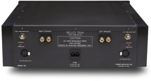 The power rating is 250Wpc into 8 ohms and 400Wpc into 4 ohms. The 17"W x 5 1/4"H x 16 1/2"D, 65-pound, dual mono $3495 USD 350A has the circuit boards and output devices mounted directly on the heat sinks to minimize internal wiring. A single 2000kVA transformer is used rather than a pair of 1000kVA transformers to provide more current for bass transients. The 350As unique character is a result of a new amplifier circuit that Dave Belles is reluctant to reveal too many details about lest his work starts to appear, uh, elsewhere. But Belles does reveal that the input stage uses J-FETs, the voltage-gain stage employs bi-polar devices, while the output stage is MOSFET. Each solid-state device is selected for suitability and sound quality in each specific application. There are three design aspects that Belles will discuss in generalities: crossover notch distortion, class-AB operation, and damping factor. Belles new circuit for the 350A is claimed to essentially eliminate crossover notch distortion, including any amplitude or temporal mismatch between the positive and negative halves of the waveform. He believes that this new approach is responsible for the openness, ease, and clarity that the 350A has. Dave Belles has also been a big proponent of class-A amplifier design for many years, but with 350A's circuit, class B was taken to what Belles believes is so close to sonic perfection that it makes class A superfluous. The 350A employs only a few watts of class-A operation to generate enough heat to keep the output devices and other internal components in a temperature range that sounds good. Finally, for the 350A, Belles ended up with a damping factor that is incredibly high -- "over 1000," but just between you and me, it is way over 1000. To put this in perspective, even expensive push-pull tube amplifiers have a difficult time exceeding 20. Single-ended tube amplifiers will generally have damping factors under 10, perhaps way under. The Mark Levinson No.33-series amplifiers, which are considerably more expensive than the 350A, have a damping factor specified as "greater than 800." Belles "over 1000" specification indicates that the amplifier essentially absorbs anything that is returned from the loudspeaker with no effect whatsoever on the output of the amplifier. Clear as a Belles