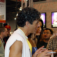 The Key Largo is really a sows ear thats been dressed up on the Internet to look like a sow's purse, and in comparison to most of the hotels in Las Vegas, it's a dive. But the rooms do start at $39.99 a night (which is a far cry from $10k), there is a band playing nightly, and Im sure if you tipped them enough theyd let you get up with them and sing "Born to Run" or any other oldie you can muster. Can you do that at the Palms? And I bet if you drank enough of the dollar beers that the Key Largo serves up 24/7 you could marry someone who looked just like Britney Spears -- and then transforms the moment you sober up. So its with this attitude that I took my annual afternoon off from the CES's high-end-audio and home-theater exhibits to visit what's become known as L.A.'s other film industrys biggest event of the year, the AVN Adult Entertainment Expo -- featuring an alternative set of "stars." The AVN Adult Entertainment Expo, or the "porn show" as its better known, has always been the CES attendees dirty little secret. If someone takes off for an afternoon and you ask him when he gets back where he was gone to for so long and his answer is vague -- "Uh, shopping at Caesars Palace" or "Nowhere" -- you have better-than-baccarat odds that he's been to the Expo. Any sort of "No," "Me? No way," or other type of half-hearted denial thats delivered too quickly or with any degree of hesitation is a sure sign of lying. People go to this show, lots of them, despite what they say when they get back. Have I broken the unwritten rule that "guys are supposed to cover for guys"? Give me a break -- people know. Besides, high-end audio and porn have more in common than most people think. In fact, they used to be inseparable. Back in the early 90s the Expo used to be part of CES, and it took place at the same hotel as the high-end-audio exhibits, the Sahara. In ways, the relationship was perfect -- two passions taken to an extreme and commercialized -- so it seemed fitting to present it all at the same venue. Miraculously, though, some high-enders complained. "Too many scantily clad women in the elevators," I heard someone mutter. Huh?!? One man's heaven, obviously, is another man's hell. To me the arrangement was perfect, the best of both worlds. But all that changed. Over the years the adult industry got bigger -- to the tune of $1 billion, I keep hearing -- and the high-end-audio industry got smaller. In time, the adult exhibits moved to the Sands Convention Center, while high-end audio was relegated to the Alexis Park. And while the Alexis was and still is nice, the Sands Convention Center was simply in another league in terms of scale, so it wasnt difficult to figure out where the money was going and where priorities were. Fifteen years ago the adult industry to the mainstream public was like the Key Largo is to the Venetian. Today the adult industry stays at the Venetian (their annual awards show is now held there), and the walkway from the hotel to the Sands Convention Center is how most of the industry gets to their show booths. Contrast that with high-end audio, where we stay at the Key Largo and schlup it down sidewalks, across streets, and through parking lots to get to the exhibits. While high-end audio seems to get farther away from the public eye, things like the Internet have brought adults stars and their products into people's homes, and today more and more adult stars can be found on mainstream television and magazines in one way or another. Much else has changed, too. CES no longer handles the adult exhibits; the Video Software Dealers Association (VSDA) is in charge, and the show is now called the AVN Adult Entertainment Expo, still held the same days as CES, mind you. But the AVN Adult Entertainment Expo is no longer the sideline event it was 15 years ago; today it is an enormous affair, professionally run by the VSDA, and it attracts hundreds of exhibitors and tens of thousands of attendees. Its also no longer free for CES attendees. Admission costs $40 -- $80 if you want VIP tickets. Still, the price of admission hasnt deterred many, particularly when theres a chance to see "stars" who you hadnt expected would show up. I went Saturday afternoon -- the Expo was unsurprisingly packed. Imagine trying to shuffle through the most popular bar in town at midnight on a Saturday night. Its no different -- there were that many people -- so pushing and shoving is the only way youll get around. Luckily, my press badge allowed me to bypass the initial lineup, but once inside it was the same for me as it was for everyone else. The 2004 AVN Expo, though, was memorable in a number of ways. It started out with, for lack of a better word, something of a bang. I was launched through the entrance and not three steps ahead of me was Larry Flynt. (The fact that I dont have to tell you who he is should tell you just how far into mainstream culture this industry is -- and I dont think it was The People vs. Larry Flynt that necessarily did it.) He was signing autographs, and he had a line longer than Pete Rose's at another trade show I attended. I was startled to see him, but I shouldn't have been -- the Expo is part of the world he created. I snapped his picture. He didnt seem to mind, and his bodyguard just nodded his head.