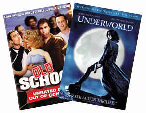Not anticipating this type of incident, I quickly search for a remedy. Within moments I learned about the small, white plastic button on the DVD player that, when pressed, immediately blanks the screen. Its real purpose is to blank the screen when the DVD lid closes, but it was a good-enough solution for a situation like this. And since Old School is a tad raunchy in spots for a G-rated airplane cabin, I just kept my finger lightly on the button for when I needed it -- which was about a dozen or so more times. Old School finished well within the first flights time, so Underworld came next. There were no surprises in the discs opening, or in the content of the film, really. However, I only got about two-thirds of the way through before we landed in Detroit. I would have to finish the rest on the small, twin-prop commuter plane from Detroit to Ottawa, Canada. No problem, I thought.