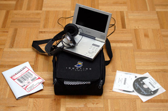 "Rent a DVD player for your flight, sir?" the attendant called -- the same thing, in fact, someone there yelled to me last year when I was running by at pretty much the same speed. I turned my head and replied with, "Well, I wish, but bet you dont have anything for Canadians, yet, do you?" Unlike last year, though, when the person replied, "Uh, well, no," the reply this year was different. "Yup" was all I needed to hear to stop me in my tracks. I walked back to the booth. "Are you sure?" I asked. "Because Im in a hurry and I can't mess around." He was certain, letting me know that they had worked out that previous hang-up for Canadians of not being able to properly ship the rental equipment back, and now we travelers from north of the border can have the same benefit of in-flight DVD movies as those south. "Well, if you can have me set in five minutes Ill take it," I declared, slapping my credit card and ID down. I had two goals with this transaction: I wanted to test just how good InMotion Pictures service was, particularly for an out-of-country consumer, and I needed to relieve the boredom of my two flights back home, which is precisely why this company offers this service in the first place.