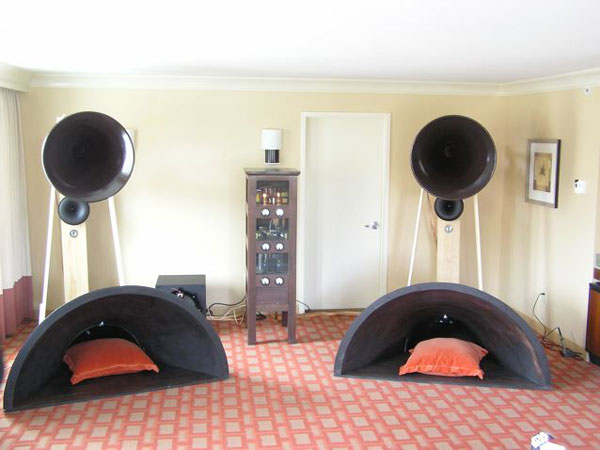 famed Goto Unit tweeters and compression-driven horns, cavernous Baltic birch bass horns,
