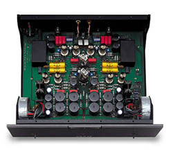 The VK-P10 is housed in the traditional BAT-style chassis, with a black, painted exterior and the visually stunning dark-gray faceplate. As is the norm for all BAT products, fit and finish are impeccable. The faceplate is adorned with an on/off toggle switch on the left, a blue LED in the center, and a phase-inversion toggle switch on the right. On the back panel reside pairs of single-ended and balanced inputs, and a pair of balanced outputs. No single-ended outputs are provided -- a converter (available from BAT) must be used to make the conversion if your preamp is not equipped accordingly. A standard 15-amp IEC receptacle is sited next to a line fuse holder, and a heavy-duty grounding post completes the back panel provisions. Ample space is provided for all connections, making it easy to connect even thick-jacketed interconnects and power cords. My only complaint with the general aesthetic is the power LED up front -- its just way too bright and distracting in a dark or dimly lit room. Removing the top cover reveals a masterpiece of thoughtful design and build quality. One circuit board carries all the components with the exception of the twin torroidal power transformers gracing the front corners. A pair of 6SN7s are located centrally, and eight 6922s make up the rest of the tube complement. All tubes are Sovtek branded -- very reliable, easy to obtain, and inexpensive. As this was a review piece, I did not play any tube-rolling games. But oh, the possibilities! Inside and near the back of the chassis are