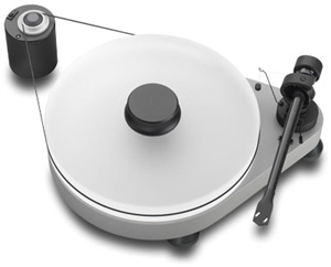 Think about that ten-moving-parts bit. The motor spins the platter, the tonearm moves up and down, left and right, and the cantilever oscillates at the micron level. Its all mechanically beautiful, especially when compared to the workings of a CD player, which could be nuclear powered for all that we-the-people truly comprehend about it. Some turntables are more complicated than others, though. Suspended designs, and those with multiple motors, can easily drive the parts count up to 20 or even 30. Imagine that! Simple is better, especially when price is an object, and apparently Pro-Ject, the venerable turntable manufacturer based in Austria and the Czech Republic, agrees with me. Although Pro-Ject does indeed make suspended turntables, the $1499 USD RPM 9 is a lean, mean, suspensionless, belt-drive turntable that is deceptively simple and surprisingly elegant. The vestigial plinth is constructed of thick MDF thats painted a flat, unpretentious silver. Its almost completely round and has only a small protrusion on which the included tonearm is mounted. The platter is precision-machined from 4cm-thick acrylic and is topped with Pro-Jects brass record clamp/weight, which press-fits onto the spindle. The clamp is a substantial chunk of metal that communicates tactile pleasure with each use. The motor is a standalone AC synchronous unit, and its a weighty little guy. The motor perches on a small platform that is also fairly heavy. This combination sits dead solid, and the pulley is true, with no run-out. Its a well-made combination that inspires confidence. Pro-Ject thoughtfully includes a spacer with which to measure the recommended distance from the platter to the motor pulley, and once placed, the motor -- and the riser that puts it at the correct height -- remains stable in its position. The power switch is on the top of the motor, so flipping it doesnt move the motor, as it did with the side-mounted switch on the Clearaudio Emotion turntable I recently reviewed. The belt is made from square-sectioned rubber. After initial installation it only takes a couple of revolutions to unkink itself, and from that point on it doesnt waver or oscillate, as round belts are prone to do. Switching speeds between 33 1/3 and 45 is accomplished by moving the belt to a different position on the pulley. The RPM 9 employs an inverted platter bearing that uses a stainless-steel axle carrying a ceramic ball, which runs on a ceramic bearing thrust plate. The bearing requires neither maintenance nor lubrication. The RPM 9 comes equipped with Pro-Jects top-line tonearm, the 9c. The 9c shares the same basic structure as the less-expensive 'arms in Pro-Jects line, but distinguishes itself visually with its tapered carbon-fiber armtube, and internally by higher-spec ABEC-7 bearings. Anti-skating is achieved by way of the familiar weight-and-line outrigger method. VTA and azimuth are adjustable on the 9c, though not while the record is in play. I only had two ergonomic bones to pick with the RPM 9. First off, I like to leave the cueing arm up when the tonearm is in its resting position. That way I dont forget about it when cueing up the next record and end up dropping the tonearm with an alarming clunk. With the lever in the up position, the tonearm will not clip down into the armrest, and it seems a little precarious hanging out in the wind like that. Its not a big problem, but as an analog addict I am obliged to be intensely anal. Secondly, the absence of a full-sized plinth means that theres nowhere to steady your hand as you attempt to maneuver the tonearm into position. When theres a large plinth present, you can steady your hand by resting your pinkie on a solid surface. This complaint is not unique to the RPM 9; rather, its a difficulty that Ive experienced with every such turntable Ive used. Should your hands be steadier than mine, you might not find this to be an issue. The very nature of the RPM 9 table speaks volumes about Pro-Ject. Its an exceptionally well-made product, with no tricks or extraneous fluffery that would cost money without a corresponding return in sound quality. Throughout the review period the table and arm performed flawlessly. Greater than the sum of its parts Kurt Martens of Essential Audio Corporation, which distributes Pro-Ject products here in Canada, supplied the RPM 9 with a Grado Reference Sonata cartridge, as he wanted me to hear the table with a cartridge that he felt was ideally suited both in price and performance. I used the Grado cartridge for much longer than I should have, as Kurt was one hunnerd percent right -- the Grado was a superb match for the RPM 9. Had I not been beholden to my task as a reviewer, Id have left this synergistic combination alone. As it was, I swapped to my Roksan Shiraz cartridge about halfway through the review period. The RPM 9 fed its signal to a Sonic Frontiers SFP-1 Signature phono stage by way of a generic interconnect that Kurt provided with the turntable. Preamplifiers included my reference Sonic Frontiers SFL-2, an Emotive Audio Poeta, a Song Audio SA-1 (review forthcoming) and the FT Audio LW-1 passive preamplifier. I used the Anthem P2 Statement amplifier (review also forthcoming) for the entire period. Speakers were the Ascendo Acoustics System Z-f3s and my own Hales Transcendence Fives. Speaker cables were Ascendos own while using the System Z-f3s and Virtual Dynamics David series when my Hales speakers were in the system. For interconnects I used a medley of brands, including Analysis Plus Solo Crystal Oval, Virtual Dynamics David, and Acoustic Zen Matrix. Power cords were all over the place, from Cardas Hexlink 5C and Virtual Dynamics David series, to homebrew AudioQuest AC12 and generic black'n'uglies. Back to the beginning again Cleaning up and playing garage-sale buys is one of the choice pleasures that come with owning a turntable. I recently purchased a linear foot of classical records for $1 each. A mixture of Decca, Angel and