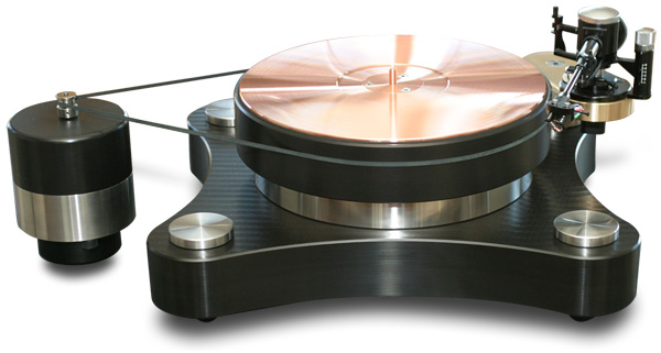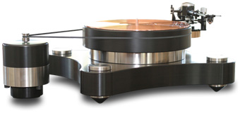 The tonearms -- up to four of 'em -- are seated on cantilevered armboards bolted to stainless-steel towers that can occupy each of the Raven AC's corners. I know that some people are suspect of the rigidity of cantilevered armboards, but the Raven AC's, machined from 3/4"-thick chunks of bronze, could easily be used to jack up a Hummer. They make mounting a tonearm very easy -- no cables to run through the base. Just screw on the tonearm, then attach the armboard with the centrally located bolt. The two rear arm-mounting positions flank a central footer, so the path for any vibration from the motor, which is on a different plane, is more circuitous than for either of the two front positions, which are on top of the front footer assemblies. Thomas Woschnick is especially proud of his DC motor -- he has designed motors for other turntable makers -- and his motor controller. The motor is a heavily modified Pabst model, which other makers use in stock form, and it brings the Raven AC's platter up to speed pretty darned quick. The controller stores any speed adjustments you make and can synchronize up to three motors, which reportedly make for even greater rotational stability. Once adjusted and set, one motor was rock solid in terms of speed, but, in theory, three synched motors should be mo' betta'. While there are certainly more eye-catching turntables on the market, the Raven AC looks every bit the serious product it is. I spot a certain Micro Seiki-ness to it. Micro Seiki, of course, is the legendary Japanese turntable maker famous for its metal platters, cantilevered armboards and outboard motors, all of which the Raven AC has. The only thing missing from the Raven AC is a dustcover, and that's by necessity -- there's simply no place to mount it. However, if your rack is like mine, there is room around the turntable, so you could have a cover fabricated that would rest on the shelf. If the Raven AC's price is too daunting for you, Thomas Woschnick has another 'table, the Raven One ($6300 with bronze armboard and OEM Stillpoints feet), that's a bit more affordable. It uses his proprietary material along with the same motor and motor controller as the Raven AC, but it's slightly more compact, which, to my eyes, makes it more attractive. The difference in price would buy you a top-flight tonearm and cartridge. Setting up The Raven AC sat atop a Silent Running Audio Craz 4 Reference audio rack. More than with any other component, a stout, sturdy rack is important for use with a turntable, because of all the stray vibrations that can pollute a listening space, not to mention the effect of footsteps. The Craz 4 is ideal for such a heavy turntable -- it can seemingly support a battleship. I understand that Kevin Tellekamp of Silent Running is working on a dedicated platform for the Raven AC. Based on the effectiveness of Kevin's products with electronics, the Raven AC base should be really something and may become a necessary accessory for owners of the 'table. I mounted a Graham B-44 Phantom tonearm on the Raven AC. I've found this 'arm to be absolutely delightful to set up and use. Adjusting azimuth and VTA couldn't be easier, and the removable armwand makes mounting a cartridge much easier than having to do it all while leaning over the turntable. Cartridges were a Zyx Atmos and a Dynavector XV-1s, both low-output moving-coil designs and rather different in terms of their sonic personalities. Speakers were Wilson Audio MAXX 2s, whose wide bandwidth was especially suited to the Raven AC. Amps were Lamm M1.2 Reference monoblocks, Luxman B-1000f monoblocks, and an Audio Research Reference 110 stereo amp. Preamps were an Audio Research Reference 3, a Luxman C-1000f, and an Aurum Acoustics Integris CDP, which also doubles as a CD player. It also has a built-in phono stage, which split time with an Audio Research PH7. My other digital source is an Ayre C-5xe universal player. Interconnects and speaker cables were from AudioQuest (William E. Low Signature with Sky interconnects mixed in) and Shunyata Research (Antares Helix and Orion Helix). Tonearm cables were an AudioQuest LeoPard, a Furutech Ag-12, and a Graham IC-70, all DIN to RCA. Power cords were Shunyata Research Anaconda Helix and Python Helix in both Vx and Alpha variations, and Essential Sound Products The Essence Reference. Clean power came courtesy of a Shunyata Hydra V-Ray power conditioner or an ESP The Essence Reference power distributor.