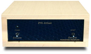 Mr. Nakatsuka volunteered that certain "static characteristics" (specifications) of the Artisan might be numerically inferior to those of other designs, but his approach places priority on coping with noise, with "removal of the elements harmful to sound quality." My own research suggests an equalizer based on negative feedback may provide a better signal-to-noise ratio; however, negative feedback typically varies across the frequency range and can result in reduced fidelity or a sound less rich. A CR-type equalizer may yield more stable impedance at higher frequencies. Both approaches have tradeoffs. After learning Nakatsuka-sans design philosophy for the Artisan, I came to the conclusion that it takes one to make one. "I designed the Artisan," he wrote, "devoting purely to accurate amplification of sound." Across my conversations with designers, Ive heard several say the same thing in different words. Wisdom to the great ones comes from listening to how their circuits serve the music, not the numbers. Review context and use In my system, Audio Physic Avanti Century speakers are connected to Atma-Sphere MA-1 Mk III mono amplifiers via Shunyata Researchs superb Orion Helix speaker cables. The amps get signal from an Atma-Sphere MP-1 Mk III full-function preamp. The MP-1 Mk III served as control center for the phono stages used for this review. It is remarkably revealing of any upstream changes. The waning days of the review period saw an Esoteric C-03 line-stage preamp join the parade. My analog front-end includes a Teres 320 turntable with SME V tonearm mounting a Transfiguration Orpheus moving-coil cartridge with 0.68mV output. The 38-pound Teres cocobolo platter is spun by a Teres Verus rim-drive system. Differently terminated but otherwise identical Silver Breeze tonearm cables from Silver Audio connect the cartridge to the RCA inputs of an Audio Research PH7 phono stage, or the XLR phono inputs of the Atma-Sphere MP-1 Mk III. Depending on the gear in use, I varied the Orpheuss impedance load across 100-200 ohms. Interconnects and power cords come from Shunyata Research: Antares Helix (XLR and RCA) and Altair Helix (RCA) interconnects, and Andromeda, Python, and Taipan power cords -- all Helix Alpha, with one Python Helix Vx. Everything gets plugged into a Shunyata Hydra or state-of-the-art Shunyata V-Ray power conditioner. I shifted the Verus motor controller to a side table to make room for the Artisan in my rack. The wood-encased phono stage sounded best with a little space between it and other components. The diminutive red Artisan added the elegance of a boutonniere rose to a rack of tuxedo black. Its transformer cord was thin and easily routed, and I plugged it into the V-Ray. Placement of interconnects required care lest they torque the lightweight phono stage off the rack. I got to equivalent output (as checked with a dB meter) by turning down the volume of the MP-1 Mk III by two clicks when switching from the Artisan to either the MP-1 Mk IIIs native phono section, which has about 60dB of gain, or the Audio Research PH7, with its 57.5dB. The Artisan had plenty of headroom for the medium-low output of the Orpheus, and gave the impression it could easily handle much lower output -- just what youd expect of a phono stage from the manufacturer of sub-.3mV cartridges. The Artisans fixed 125-ohm input impedance for moving-coil cartridges worked just fine for the Transfiguration Orpheus (moving-magnet impedance is the standard 47k ohms). From my experience with a variety of adjustable phono stages, the impedance and gain parameters of the decidedly non-adjustable Artisan wont serve every moving-coil cartridge but should hit the sweet spot for a wide range beyond those in the Zyx lineup. The Artisan's spirit Whenever a new review component arrives, Im eager, skeptical and reluctant: eager to hear what it can do, skeptical that Ill learn this in a few short sessions, and reluctant to wade through the typical break-in period, especially lengthy for millivolt-driven analog components like tonearm cables and phono stages. So Im prepared to be patient while searching for true character. My take on the Artisan evolved over time, but shortly after its arrival, when I heard the opening cuckoos in Mahlers "Titan" symphony played by the St. Louis Symphony under Leonard Slatkin [Telarc 10066], I knew right away that this phono stage came from someone with an ear for music and a keen understanding of the art of musical reproduction. My ears perked up on the very first band. There it was -- that rich rounded tonality, that vibrating column of air that came only from a wood-bodied clarinet. As a former clarinetist, I could tell Mr. Nakatsukas Artisan nailed this instrument right out of the box. And there was the sweet and lambent tone of a silver flute. Sections of shimmering violins betrayed a fine dynamic gradient. As I listened to the Mahler piece, my anticipation for the new quickly relaxed into enjoyment of the familiar. I like equipment that doesnt make me think about audiophile words, and by enabling this the Artisan made a strong first impression. During my time with it, I appreciated the Artisan as one of those components whose shortcomings -- yes, it has some, and well get to those -- you know are there, but you easily forgive and forget them. Despite my initial skepticism, I took to this phono stage from the start. Having used it with different phono stages, I know the Transfiguration Orpheus is a tonal-purity champ. Neither too warm nor too cool, it delivers harmonics and overtones with appealing, lifelike neutrality. This familiarity confirmed that the Artisans own tonal character was largely unimposing, as it yielded to the cartridges editorial control. If there is no component that sits perfectly in the middle of some abstract neutrality dial, then this jury found the Artisan leaning toward tonal richness and weight, but it was neither lush nor overly warm. As it proved adept in de
