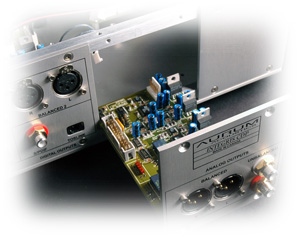 "All that glisters is not gold." Too true -- and some that glisters is. I’ve been living with an Integris CDP long enough to understand that Derrick Moss, Aurum Acoustics’ top banana, is a master of his craft. Take glister loosely. You’ve only to look at the sedately styled Integris to anticipate its merits. The company website provides views inside and out, with accompanying texts. I took the top off. The photos in no way gild the lily (click for enlargements). The Integris radiates quality and competence and, equally as important, has been engineered to accommodate expansion and upgrades. For example, a tidy little port on the Integris’s backside connects to one’s computer for uploading firmware modifications.