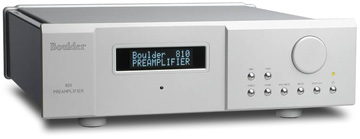 In todays tweaky audiophile marketplace, some high-end companies can have a hard time of it. Outfits such as Boulder Amplifiers are driven by engineering -- the owner, Jeff Nelson, is an engineer himself -- so theres no snake oil to sell. The products are built in a modern manufacturing facility, so the marketers have no mountaintop hideaway inhabited by monks to promote. Most important, Boulder builds what are, in my experience, neutral-sounding, slickly functioning components that add to the music little or no character or colorations of their own. Sound a little boring? Perhaps the story can be, but the gear surely isnt. Boulders 800 series of products is Jeff Nelsons attempt to offer, at approachable prices, a modicum of the performance available from his companys top products, the 2000 series, and a larger helping of the qualities of the second-tier 1000 series. If youre familiar with Boulder gear, you could think of the 800s as slightly scaled-back versions of the 1000s: The 800 power amplifiers are about half the power of their 1000-series counterparts, and their casework is much less massive, if no less beautifully executed. So far, there are four 800 components: the 850 monoblock amplifier ($5000 USD each), the 865 integrated amplifier ($11,500), and the two components reviewed here: the 810 line-level preamplifier ($6900) and 860 stereo power amplifier ($8500). 810 The 810 preamplifier (17"W x 5.5"H x 15.25"D, 18 pounds) has four sets of inputs and two sets of main outputs in addition to a set of Record outputs, all with balanced XLR connectors. (Boulder has available RCA-to-XLR adapters in case your source component lacks balanced outs.) The 810s circuit design is described by Boulder as "balanced, dual mono, three-stage, instrumentation-style circuitry" -- all hallmarks of Boulder design that are carried throughout the product line. With the 810, as with all Boulder products, much attention has been paid to the power supply: Two toroidal power transformers -- one each for analog and digital -- ensure that these equally critical stages are isolated from one another. The transformers are potted to ensure quiet operation. Slick functionality is also a key design element of the 810: The stepped volume control operates in 0.5dB increments, and is the same flywheel-type rotary control that I so enjoyed using on Boulders 1010 preamp. The volume disc -- you cant call it a knob -- requires the user to exert very little force: it almost spins itself. Its also very easy to dial in the perfect setting with your thumb without overshooting your mark. A 12V trigger is also included, and Boulders proprietary BoulderLink method of wired connection allows the preamp to control the functionality of Boulder power amps as well. For instance, the 810 will turn on downstream 860s and, if it detects a fault in one of the power amps, will alert the user to that fact via its large alphanumeric display. Speaking of that front-panel readout, its the best Ive seen: very easy to read from any reasonable distance or angle, useful once programmed with source names, and totally classy in appearance. The 810s simple front-panel buttons allow the user to access individual inputs without scrolling through them, though this will mostly be done with the nicely contoured, all-aluminum remote control. Overall, the 810 presents a professional yet luxurious feel, no doubt due in large part to the fact that its entirely designed and manufactured in or around the companys Colorado facilities (Boulder Amplifiers even has their own CNC metal-machining equipment).