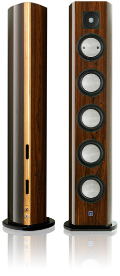 the drivers and making a conventional speaker grille unnecessary. The truly high-end wooden cabinet (53.8"H x