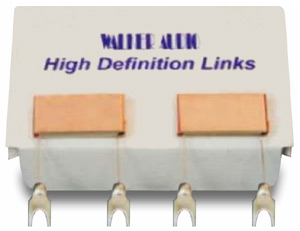Walker Audio Ultimate High Definition Links, Vivid Deluxe, Vivid Basic Acquainting myself with audio products Id otherwise be unlikely to try stands first among this gigs pleasures, and so far Ive been fortunate: everything Ive covered has been good, effective stuff. Heres hoping the enchantment holds for these items, both from Walker Audio of Audubon, Pennsylvania -- about which, first, an aside. A few years ago, an audiophile chum who lives in Merion Station, not far from Audubon, took me on a visit to Lloyd Walkers establishment. There in the workshop, in stages of completion, lay the Proscenium Gold Signature turntable on which Walker has built a reputation for cost-no-object, top-flight performance. While admiring the quality of parts and workmanship, I admitted to Walker that my interest in the turntable dwelt in the abstract -- Id sold off my LPs to make room in my small urban digs for a growing CD collection. (I was then, and remain, a music reviewer.) My host maintained his courteous demeanor, but I could tell from his fleeting wince that, in his eyes, I was now the barbarian whod slipped through the gate. It remained withal a pleasant and instructive afternoon. Lloyd Walkers a gent. Cast your memory back beyond Bic lighters and paper matchbooks to those charming little boxes with colorful labels and abrasive strikers on the side. Remove labels and strikers and envision a pair of those boxes made of featureless copper. Dot the corners and two points along the top with silver solder. Attach two silver crab claws on slender silver wands and youve an attractive, high-end thingamabob called the Walker Audio Ultimate High Definition Link. The Links crab claws, made of "ultra pure" silver, are spade lugs that you attach to your speaker terminals in parallel with your cables. Properly installed, the Link is freestanding, touching neither speaker nor floor. Its unusually fragile, cryogenically treated contents, "built to proprietary specifications," are encased in protective wood. (Theres no way to peek inside a Link without destroying it.) Walker reports an assembly mortality rate of 10-15%. As to why cryogenics, I would have choked over the explanation were it not for my happy association with Bill Stierhouts eternally spooky Quantum Resonance Technology thingamabob. Im told that cryogenics, like QRT, operates at the molecular level to get the traffic to straighten up and fly right. If you require a deeper understanding, check with your village explainer or send me back to school for a doctorate or two. Ive still no idea how QRT operates (thus "eternally spooky"), never mind Walkers UHD Link. Happily, what I hear takes precedence over what I need to understand. The Links are intended to minimize noise, specifically "electronic glare," EMI, and RFI (electro-magnetic and radio-frequency interference). Noise -- or glare, grain, grunge -- is what we dont want. Under the electronics in my system, Ive got other gizmos that defend against audible neer-do-wells, including the excellent Harmonix Reimyo ALS-777 line conditioner and Silent Running Audio isolation platforms. With respect to the Reimyo, the recent arrival of Harmonix X-DC Studio Master power cords will be the subject of another report. In short, Walkers Links operated in as favorable an environment as I can provide. The information sheet accompanying the Links tells us that "[t]he music will become more natural sounding. The electronic glare will disappear. The [soundstage] will open up to become better focused, more transparent. Harmonics will be cleaner, clearer and the dynamics will be faster and sharper, without harshness." Id have put "electronic glare will disappear" first. In my experience, reducing glare enhances all of the above, depending on how much glare is eliminated. Whether this can be measured scientifically is interesting but far from urgent, at least for me. Listening for enjoyment to a familiar system in familiar surroundings is about as subjective an activity as exists. Ones ear-brain nexus grades sonic differences. The buck stops there. In response to my request for more information, Walker Audio provided the following: "We developed the original HDLs six years ago. They were well received by everyone who used them and got enthusiastic reviews from Ultimate Audio, Listener, SoundStage!, Enjoy the Music, among others, along with The Abso!ute Sounds 1999 Golden Ear Award. We later developed a special RFI/EMI shield and [a] unique grounding technique and named the new version Mk.II. "Then one day we decided to go for a no-holds-barred version using some of the ridiculously expensive parts we put in our Reference phono amp. The result startled us. We then experimented with cryogenic treatments and discovered that the best of them for our purpose was a slow-immersion process. It is expensive and takes time. "The Ultimate HDLs remove RFI and Ultimate high frequencies from your system. The units fragile parts, which are matched to 0.05 percent, must be routed precisely into the wood block for protection. The wire and spades are Ultimate-pure silver and each piece is directionally wired. The Ultimate HDLs need four to five days to break in. During the breaking-in stage, they will sound great for 30 to 45 minutes, then bright, then dull, then bright again. After they have matured, they will settle down and become neutral. "With the removal of RFI and Ultimate high frequencies, the soundstage will open up, becoming taller, wider, and deeper. The music will sound more natural with improved focus and harmonics, and the bass will have more impact and definition." My speakers are Wilson WATT/Puppy 6es. The upper-unit WATT connects to the Puppy by way of a jumper that, beginning with this model, cannot be replaced without invasive surgery and a voided warranty. Although the Wilson system offers two pairs of binding posts, one each for WATT and Puppy, Wilson instructs against biwiring: speaker cables connect to the Puppy. At 