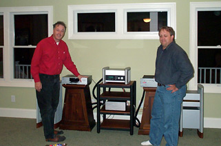 Thats a ridiculous amount of money, but somehow, as I was helping set up these speakers in my living room, I was not at all bothered by the price. Id heard these better my X-1s, so I was convinced of their worth. Peter McGrath, an accomplished recording engineer and one of Wilson Audios setup wizards, assembled and calibrated the X-2s in my living room. Amplification The Halcro dm68 monoblocks (225W into 8 ohms), those ultra-low-distortion super-fidelity amps from Down Under, were my choice to drive the speakers. Halcros matching dm8 line-stage preamp was there to control the volume and source switching. Theres typically a synergy with an amp-preamp combination from the same manufacturer, but there was a greater deciding factor in my choice: Id heard these electronics drive Wilson Audio speakers to magnificent effect at the 2003 CES. There, the combination of Halcro electronics and Wilson MAXXes permanently burned an image in my aural memory. Id heard the MAXXes before, but never quite like this. I knew the Bruce Candy-designed Halcros were weaving magic. The sound at that CES was ethereal yet tangibly real, and I was struck by it -- and by the price: $37,990 per pair for the dm68 amps, $12,990 for dm8 line stage. Philip OHanlon, Halcros North American distributor, ably installed the electronics in the system. Power and cables The power-distribution and cable systems were from Shunyata Research. The $1995 Hydra Model-8, a SoundStage! Innovation in Design award winner, was connected to a dedicated line via an optional Anaconda Alpha power cord ($1995 each), then connected to the other components in the system with a combination of Anaconda Vx ($1995 each) and Diamondback ($175 each) power cords. The latter come standard with Halcro electronics, a testament to the pairings synergy. Speaker cables were the top-of-the-line Constellation Series Andromedas ($2995 per eight-foot pair); the matching Aries interconnects ($650 per one-meter pair), in both RCA and XLR configurations depending on the need, rounded out the system. Grant Samuelsen, Shunyatas national sales manager, ensured that each component was optimally tethered to its neighbor, and that the system AC was powering everything to perfection. Digital My source components were Ed Meitners $9995 EMM Labs DAC6e six-channel DSD converter and a Meitner-modified Philips SACD1000 transport (the modification is $1400; the price of the transport varies, as this model has been discontinued and is available only through the used market). These two components were configured to pass a DSD signal via ST glass optical cable. Youve heard about these components if you follow the audiophile Internet buzz, and Im here to tell you that the superlatives youve heard are true. My digital reference up to this point, the most excellent Esoteric DV-50 universal audio/video player, was trounced in all of ten seconds -- playing SACDs, the improvement in resolution and transparency was mind-numbingly apparent to all in attendance. Playing backup to the EMM Labs-Philips combo was a portable Nagra V digital recorder ($6200) containing, via a hard-disk drive, a selection of Peter McGraths own symphonic recordings. This little fellow holds about 20GB of music and, with its simplicity of use and jewel-like build quality, is easy to get attached to. The grand total for this system exceeded a wallet-rattling $205,000 -- plus shipping! In addition to Grant Samuelsen, Philip OHanlon, Peter McGrath, and me, on hand was fellow SoundStager Anthony Di Marco, flown down from Massachusetts to lend a strong back and a good ear. Among the five of us, we had over a century of experience traversing the cliffs of audiophilia without ropes or safety devices. The plan was to begin setting up The World's Best Audio System on Friday night, finish up on Saturday morning, listen most of the afternoon, and go out for a back-patting meal that night. Everything was accomplished according to schedule and without a hitch, except that we never did make that meal. We couldnt drag ourselves away from what we were hearing. It all must have looked strange to casual observers -- such as my wife, Andrea, and Peters better half, Elizabeth. Here were five grown men, rotating three at a time on a couch, utterly transfixed by a stereo system. We looked mesmerized by what we were hearing. We were. What was all the fuss about? To a greater degree than with any other audio system Ive ever heard, this one "disappeared" into nothingness. There was no noise, no artificial artifacts, no limit in dynamics or scale. Imaging was as ultra-precise as Ive ever heard, but with a life-sized scale that lent credibility to the precision. There was width to the soundstage that extended far out to the sides, and depth seemingly beyond the front wall. The scale was to neck-craning proportions just when the music called for it, but the music could sound delicate and pristine, too -- just like its live counterpart. We listened to Peter McGraths master tapes as well as to a wealth of SACDs. Without fail, the sound beguiled and captivated us. Kodos Mondo Head SACD [Red Ink/Sony 56111] presents an almost perfect example of all the characteristics just described. The various percussion instruments jump from space in a startling exhibition of transient snap, full frequency response, and large-scale dynamics, all from within an immense, continuously rendered soundstage. Things begin delicately on "Daraijin," for example, but grow in intensity, complexity, and scale as the song builds. This system tracked the musical fluctuations perfectly, not miniaturizing the subtleness or, conversely, compressing the dynamics. Effortless is a term often used in describing the sound of a good hi-fi. The World's Best Audio System set a new standard in my book. Andrea Bocellis sheer vocal presence on "Resta Qui" (Cieli Di Toscana on SACD [Sugar/Polydor 314 589 813-2]) was palpable and haunting. If midrange faithfulness is the ultimate litmus test,