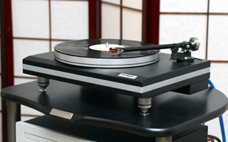 The new Thorens TD850 turntable ($2995 with RB300 tonearm) wins the Ultra Audio Density Award hands down. With a thick slab of stainless steel running through its middle, the TD850 feels more like a 45-pound Olympic weight-training plate than a turntable. The eager young gentleman in the Unico room was happy to tell me how good this baby sounded, but unfortunately he wasnt able to place it on the equipment rack for fear that the sharp cones on the bottom of the turntable would damage the racks surface. I made change for a dollar, and we carefully set the table down on three quarters (heads up for best sound) so that we could have a listen. Fronted by the Clearaudio Aurum Classics Wood cartridge ($250) and backed up by the new Unico P ($1696) -- the Unicos little brother but with less power and an obviously competent phono stage -- and presented by the Opera Platea speakers ($2595/pair), the sound was dynamic and exceptionally rhythmic.