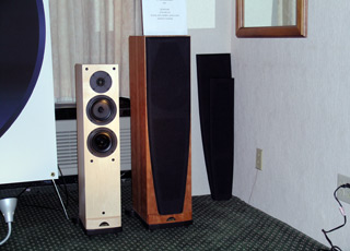 The RMAF was not limited to high-priced gear. Welborne Labs showed the newly revised Ultrapath preamp, available in kit form for only $1200 or assembled for $1700. Using 6GM8 tubes (originally used for car radios) and a battery power supply, this line-stage preamp includes Ron Welbornes new discreet-stepped remote volume control. Welbornes new Terraplane 300B SET monoblock amps ($1700 kit, $2500 assembled per pair) drove a $10,600 T-3 Project speaker from Classic Audio Reproductions very convincingly. Usher Audio partnered with dealer Blue Marble Audio to show the new 8871 Dancer 2 speakers ($10,900 per pair). The 8871s beryllium tweeter delivered scads of musical detail, but was not spotlighted as high-tech tweeters sometimes are. Two 8" woofers delivered Ushers trademark crushing bass response. Sources were the imposing $3000 Opera Droplet CD player and the $2995 Naim CD5X with $995 Flatcap 2 external power supply. The elegant-looking $4495 Belles 28A full-function solid-state preamp, making its first-ever appearance, and $3995 Belles 350A Reference amp drove the speakers effortlessly. Cabling was Blue Marble Audios $495-per-meter-pair interconnects, $795-eight-foot-pair speaker cables, and $485-per-six-foot-length power cords. The throngs of listeners always present attested to the systems musical sound. Equipment was housed in a striking $2200 glass-and-wood Schroers and Schroers Archos equipment rack that avoided the industrial look of many racks. An $1800, a Silver Circle Audio power conditioner supplied clean AC. Audiopax introduced the new modestly sized and priced L350 speaker, which retails for $3490 per pair. Using a 1" tweeter and a 6" midrange/woofer of Audiopax's own design, these small floorstanders generated amazing bass, and were very clear and detailed. Driven by Audiopaxs $4990 Model 5 preamp and $8990 Model 98 power amp, the sound was beautiful and dynamic. There wasnt anything visual to distinguish the L350s from dozens of other well-finished two-way floorstanders, but when I listened to them, they floored me with their huge soundstage. This was probably my favorite room at the show, and featured components that would fit in a smallish space. Dan Wrights ModWright room featured his highly regarded $2200 SWL 9.0SE preamp. Dans modified Denon 3910 universal audio/video player with the PS 9.0 power supply and Universal Truth modifications ($2800 to modify your player, $3995 including a new player) were playing through the preamp and driving Channel Islands Audios $2300 DM·200 mono amplifiers to produce great sound through Penaudio Serenade speakers ($9000 per pair). These slender floorstanding speakers use a side-firing woofer to generate some very robust bass, and the overall sound was open and spacious. Power was via a World Power Power Wing conditioner and Jorma Design power cords. Variety is the spice of an audio show. In this spirit, Song Audio alternated between two rather different speakers: Zu Cable Druid Mk 4s ($2800 per pair) and their own Type II Silk DM minimonitors ($2000 per pair). Electronics were Song Audio's SA-1 two-piece preamp ($4500) and SA-300 MB monoblocks ($4900 per pair), or the SA-34B integrated amp ($1900), all of which SoundStage! Network readers know well. I saw one of the mono amps up close in the elevator after the show ended. It's a looker. Although several dealers lamented the difficulty of getting deep bass in the standard-sized hotel rooms, Keith Herron showed it was possible. His prototype ESP-1 speakers and prototype S118 subwoofers (price not set for either) produced room-shaking bass from a well-recorded piece (the Rutter Requiem?). Of course, Herron electronics drove the system: $4995 VTSP-2 vacuum-tube preamp, $4995 HL-1 solid-state preamp, four $6850-per-pair M1 mono power amps, and a $3650 prototype VTPH-2 tube phono preamp. A Herron-modified Philips universal audio/video player was the digital source. Gershman Acoustics Black Swan speakers ($30,000 per pair) didnt have any trouble producing deep bass, either. The Black Swan's Separate Sub Alignment System (SSAS) mounted its woofer in a separate enclosure, with the midrange and tweeter in their own enclosure straddling the woofer. This allowed the two modules to be time aligned for more coherent sound, but prevented woofer vibrations from interfering with the mids and highs. The result? A robust, dynamic, powerful sound that still provided plenty of detail. The beautiful gloss-black finish would look good in any home, and because the Black Swan is only four feet high, it would actually fit in a real house. The demo also used Red Rock Audio Renaissance amps and a ModWright SWL 9.0 preamp.