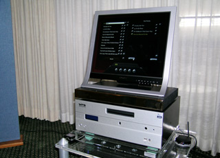 Omega Speaker Systems and Hudson Audio Imports have teamed up at previous shows to provide really good sound at very reasonable prices, and this year they were joined by Red Wine Audio, a company that manufactures electronics and modifies existing electronics. One of Red Wines modifications is for the iPod, costing only $199. It adds audiophile features (like Black Gate capacitors) to the worlds most popular portable music server to deliver much better sound. The system playing when I visited the room consisted of a $2350 Eurolab Premier turntable with a $1890 Moerch DP-6 Precision tonearm carrying a $2850 Allaerts MC-1B cartridge. I liked the Eurolab 'table because its a plinthless design that doesnt require much shelf space but still seems well engineered. A Lehman Audio $3000 Silver Cube Phono amplified the cartridge output and fed it to Red Wine Audios $799 Lotus passive preamplifier and then to the $1199 battery-powered 6Wpc Lotus stereo amplifier. Both tiny Lotus products were positioned on a matching $225 Lotus platform. All this played through Omegas newly designed Aperiodic 8 single-driver speakers, which sell for $1249 per pair with ebony or teak finishes, or $1199 per pair in laminate finish. The system looked and sounded very musical, equaling much more expensive systems on display. A couple of new technological developments impressed me. The VRS Revelation Music Studio is a device known as a music server. It records your CDs onto a huge (600 gigabyte) hard drive at up to 24-bit/192kHz resolution and compiles a music library. By accessing online music databases through its built-in WiFi or Ethernet connections, it downloads track and performer information, along with album cover art -- just like you do when you rip a CD to your computers hard drive (but with far better quality). Then you can review whats stored in your library and compile a list of selections you want to hear. A 12" monitor and wireless keyboard let you see and control the Revelations operations. If you wish, you can burn a compilation CD from any playlist you develop, but at full CD quality, not the iPod-quality MP3 files (although the Music Studio will convert the CD-quality source to MP3 files if you wish). A really easy-to-understand opening menu takes you to the different functions you can perform. Heres a way to store up to 1000 CDs in high-quality uncompressed form, play them back through internal high-quality DACs, and never have to hunt for the CD box nor return it to the cabinet when youre done with it. If you fill up the internal drive, additional external drives with a terabyte (1000 gigabytes) of storage each can be added. When updates to capabilities are developed, many can be installed by downloading them over the Internet and installing them on your Revelation, avoiding the need to send the Revelation back to the manufacturer. Although VRS is still putting finishing touches on the final software details, the company expects to have a finished product available no later than January 2006. I can imagine this is how well all listen to digital music ten years from now, getting new high-resolution music online and downloading it directly to a music server like the Revelation. Another even more radical bit of technology was shown by Eminent Technologys Bruce Thigpen. His new Infrasonic Woofer literally shook everyone who saw and heard it. Looking like a fan, with rotating blades whose pitch is modulated by the audio signal to produce sound, the Infrasonic Woofer has a frequency response of 40Hz to DC. Thats right, DC. And thats plus or minus 3dB, with response up 3dB at 3Hz. Bruce wowed us with a demo starting with a very clean 40Hz and moving down in steps to 5Hz (at 110dB!), where the walls of the hotel room started to flex in and out. He stopped at that point rather than inflict structural damage on the hotel. Why bother with such low frequencies? Bruce told us that some movie soundtracks actually contain frequencies below 10Hz, so if you really want to impress your friends, the $12,900 subwoofer should do the job. It requires that you to mount it in a wall or ceiling. I dont even want to think about the version shown for a car audio system. The Weird Science award goes to Audio Magics Quantum Physics Passive Noise Absorber. These looked like small paperback-book-sized boxes that you place on top of electronics, cables, or anything else in your system. The Noise Absorbers are claimed to absorb RFI and EMI energy and convert it to heat, thereby shielding the component on which they're placed. There are two models: a $225 external unit and a smaller $75 internal unit for inside the chassis. Although my snake-oil detector was all primed to go off, Audio Magic did a quick demo where they removed two Noise Absorbers from the DAC in the system. I immediately thought I heard a bit of additional grunge in the sound, and when the Absorbers were put back on top of the DAC, the sound was definitely cleaner. So the Noise Absorber appears to work, although I have no inkling why. Audio Magic is an appropriately named company to handle this product. In all fairness, the Noise Absorber is just a small part of Audio Magics product line; the company also manufactures some very interesting power conditioners, cables, and a DAC as its primary business. Theres no way to cover 113 rooms in the 24 hours available to me, so Ive undoubtedly left out many interesting products and systems. RMAF 2005 was a high-energy event that everyone seemed to enjoy. The hi-fi industry needs affordable regional shows like this as an alternative to traditional brick-and-mortar retail outlets. Its a great opportunity to mingle with other audiophiles, dealers, manufacturers, and writers, and I hope to do it again next year. ...Vade Forrester