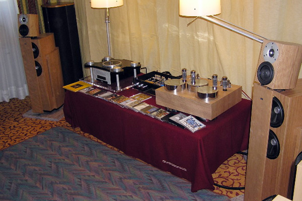 Another wonderful surprise was Audiosonica, a small manufacturer of a choice and ingeniously crafted line of speakers. Audiosonica had put together a seriously refined system: Bluenote Stibbert Mark II CD player, their own HE KT90 prototype tubed power amp, a Klimo Merlino Gold dual-mono preamp (3800), and their own top-of-the-line speaker, the Dragonfly (9600/pair). The Dragonfly is a compact three-way with a front baffle over the woofers to prevent distortion over 42kHz -- the baffle creates diffusion so that sonic nasties dont fall on the ear. This was explained to me by Fabio Fiori, designer and CEO of Audiosonica. His company had been unknown to me until I strolled into their room at Top Audio, and I was delighted to make the acquaintance -- their speakers seemed to occupy a distinctive niche in terms of their nimble and refined sonic character and unique overall design. It was altogether fitting that the speakers' model names all come from patterns in the art of fishing the dry fly -- feather nimbuses dappling and skittering over the surfaces of brooks and streams. The speakers themselves rippled with power and allure. The sound I heard was beautifully airy and magical on Puccini and Verdi arias, on a choral piece by Ockeghem, and on a track from Romantic Warrior by Return to Forever. Another highlight was the Audiogamma room with the new B&W Signature Diamond two-way speakers (16,000/pair), driven by CATs inimitable JL2 Signature Mk.2 stereo amp, a push-pull triode putting out 100Wpc. Cables were by AudioQuest, and the preamp was the CAT Ultimate SL1 Mk.II. The source was the Esoteric combo of P-03 SACD/CD transport and D-03 DAC -- the top of the line. B&Ws Signature Diamond is a 89dB/8 ohm, two-way vented speaker. The sound they made was glorious playing Jascha Heifetzs silky performance of the Beethoven Violin Concerto from a JVC XRCD. I could hear a great breath of bass from the bass violins, strong impact from the timpani, and the fine, woody, inner-chamber sound of Heifetzs instrument. The system was articulate and refined but also very powerful and dynamic. I spent about a half hour in the room and noticed that it was SRO most of the time, with an extra dozen listeners lined up against the rear and sidewalls. When I later spoke with Ken Stevens of CAT once Id returned Stateside, he remarked that it was interesting that a distributor of mainstream hi-fi equipment such as Audiogamma would show up at Top with his amp and preamp. Recalling the system sound, it certainly made sense to me. One of the most spacious rooms at Top Audio was Sonus Fabers, which took up a corner of one of the basement halls. When I walked through the velvet entry curtains, I saw that nearly every seat was filled, both in the listening section in front of the speakers and in the schmooze-circle lounge in the corner. In the latter I met marketing director Giovanni Menato, who told me that Sonus Faber was launching the new Auditor M speaker (3700/pair; stands, 750) to replace the Cremona Auditor minimonitor. Set about 14 apart, the 88dB/8ohm Auditor Ms were toed-in at a severe angle, creating a deep soundstage with good bass that breathed warmth into the room. The drivers are a Scan-Speak ring-radiator tweeter and a SEAS midrange specially modified with fiberboard in the mounts. With a Tracy Chapman LP playing, the sound was mellow and sweet, with snaky, liquid guitar work, ringing marimbas, and resonant panpipes. I could hear the pipers breath attack as he blew across the reeds. The analog system consisted of a Linn Sondek LP12 turntable and Sumiko Peer cartridge. The electronics were an Audio Research Reference 3 preamp, Nagra CD player, and Viola Bravo Reference monoblocks. Cables were Oracle by MIT. I asked that they play my reference CD, Mozarts Mass in C Minor; the Kyrie had a coherent choir sound, good bass, and an overall soft presentation, allowing the crystalline quality of soprano soloist Natalie Dessays voice to be foremost. A supremely intelligent system and a fine speaker, I thought. I hope to hear the Auditor M again very soon, perhaps in my own system.