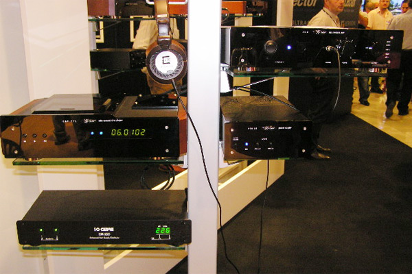 Near the end of Day One, I drifted around to an attractive corner display put together by Sound and Music, an Italian retailer from the Tuscan walled city of Lucca. This was on the floor called "The Aquarium," a more or less open basement hall bustling with visitors. There was a lot of noise in the S&M corner: clerks huddled with customers while others dashed around behind the display counter, yelling out catalog numbers and artists names. I heard "Coal-Trane-nah!" and "Tosca di EMI!" shouted over the din and general hubbub. S&M was selling XRCDs galore, along with vintage and audiophile reissues of classic LPs. I browsed for more than half an hour and I picked up two JVC XRCDs for 35 apiece, and seriously considered LPs by Speakers Corner, Chesky, and vintage Impulse! and Deutsche Grammophon discs for 40 each. These prices were higher than in the States, but the breadth and concentration of quality in rock, jazz, and classical was astonishing. I noticed many Japanese vinyl pressings of classic jazz recordings by Miles Davis, Coal-Trane-nah, Thelonious Monk, and Bill Evans. My first thought was I want them all. My second was Few will fit in my suitcase. My third was What if Im caught at customs? My last stop of Day One was in the middle of the Aquarium and its various audio grottos. There was so much to take in, and by this time I was so overloaded with information, that I almost missed one of the finest demos of the show: Docet-Lector, with Chario Synergetics and Ultrasone Headphones. Their hi-fi station was like a classy enoteca (wine bar), a haven in the midst of the crazed Aquarium. Suddenly, it made perfect sense for electronics makers to show with a headphone company -- the steady thrash of show and audio noise vanished when I put on a set of phones and pushed Play on the sparkling black-Lucite face of a Lector 7T CD player (2799). The new Zum preamp and headphone amp (699) and the 7T sounded fabulous through the Ultrasone cans -- dynamic and analog-like (no kidding!). Too many digital sources compress the peak dynamics, whitening or making lean the timbral richnesses of a recording. Not so the Lector 7T -- in fact, quite the opposite. The Lectors sound was harmonically saturated, tonally accurate, drawn entirely within the recognizable character lines of each instrument and voice, and dynamic to beat the band. The new Zum preamp-headamp has five inputs, a bipolar output, monolithic chips, and capacitance of 20,000µF. I played my fave, Mozarts Mass in C Minor, and listened through three tracks -- Kyrie through Laudamus Dei -- completely rapt amid the milling crowds of audio bustle, taking it all in like a generous glass of darkly sweet (and expensive) Brunello. And so ended my first day at Top Audio. ...Garrett Hongo