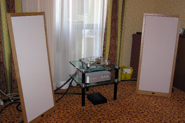 I then made my way to the main Audio Note room, where Peter Qvortrup, that genial madcap, presided over the standout demo of the show. The AN Gaku-On Monoblocks (150,000/pair) drove a no-holds-barred, no-compromise system with a pricetag of nearly 450,000. Id spent about 30 minutes listening to LP tracks of classical orchestral and piano music when Peter archly suggested that he put on his favorite CDs of heavy metal, electronic, and Bang-on-a-Can fusion. They blasted the room with sound. Over the brilliant cacophony, he yelled, "Audio Note has the philosophy that, instead of pushing air, the speaker pressurizes the room!" The units doing the blasting were a pair of E-Sogon speakers (100,000/pair), which could also play everything else he threw at them: Fritz Kreisler violin cadenzas, Glenn Gould performing Bach, Peter Maag conducting the London Symphony in Mendelssohns A Midsummer Nights Dream, and Ben Websters fat tenor saxophone. The AN system performed like an audio changeling; it was nimble, timbrally rich, layered, thumping, blasting, nuanced -- whatever the music called for. For 449,500, well it should. A few rooms later, I stepped into the Best Audio and Video room, where I recognized some familiar equipment: the Manley Labs amps and preamps. There on the floor were the battleship-gray Snapper 100W monos (5600/pair) and Neo-Classic 300B preamp (6700). The source was a Spectral SDR-4000 CD player (24,900), and the cables were by Solitone of Hungary: Premium interconnect (360/1m pair) and X-Speakers (600/2.5m pair). With the Manleys, Best used the Austrian-made WLM Lyra Mk. 1 speakers (98dB, 6300/pair), which employ a supertweeter and can be fitted with an external crossover. With the soft, nylon-strung guitar music that was playing when I came in, the system created a sound that was warm and entirely pleasurable. Manleys retro American styling stood out even more here. Listening to Sarah Vaughan sing "In My Solitude," it occurred to me that, even when they used American equipment, the Italians seemed to strive for a warmer, more intimate sound. The result was somehow less showy and in-your-face than a lot of the exhibits at CES, but still thoroughly engaging, and set a mood that was relaxed and leisurely -- a perfect way to enjoy music. Podium Sound, a British manufacturer, was a wonderful and delightful sonic surprise -- I hadnt heard of this company or its speakers. In a small room on an upper floor I found Shelley Katz, a man with a strong gaze and dressed in a neat suit, standing inside the foyer. When I stepped inside, he handed me a brochure. Taking it and glancing past his shoulder, I spotted two planar-looking panel speakers that he told me were making their international debut. Associated components were an Oracle CD 2000 and the Plinius 9200 integrated amp. I listened for a while and found the system sound very resolving of Mozarts difficult Mass in C Minor, in a recording with a small orchestra and a large choir -- as well as of some Cuban jazz with a lot of rhythmic complexity and fast, ephemeral transients. Katz told me hed designed his speakers as floating panels based on transverse-wave technology: no ribbons, no electrostats, no cones, no subwoofers, no crossovers. The speakers are 91dB/6.8 ohms with a frequency range of 40Hz-20kHz. A Julliard graduate and acoustic scientist, Katz is also an accompanist and a concert pianist.