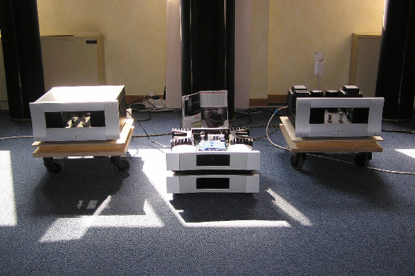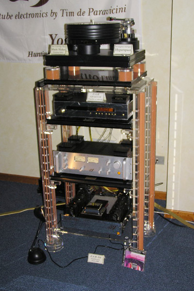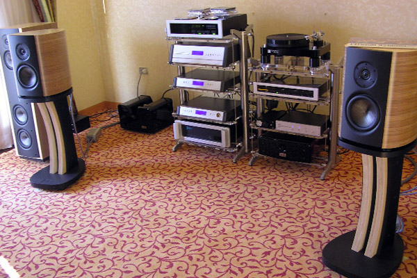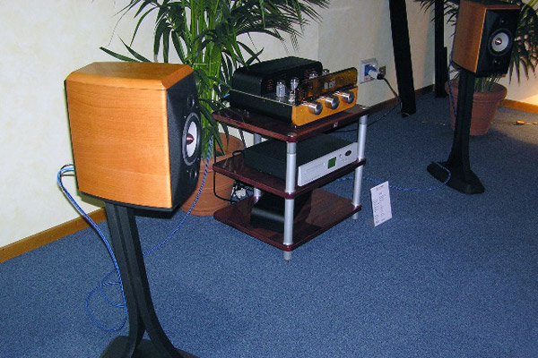 Sacchetti walked me by other Unico models making their debuts. First was the new Secondo integrated amp (2008), which is available in black or silver, as will be all Unico amps from now on. "Black is back!" Sacchetti said. Unlike other amps in the Unico line that use the 12AU7 tube in the preamp section, the Secondo employs two 12AX7s in its input stage, which is pure class-A. The hybrid amp produces 100Wpc at 8 ohms, or 200Wpc at 4 ohms via a double power MOSFET in dynamic class-A. There are five unbalanced line inputs, one balanced, and an output for a subwoofer. The Secondo uses an Alps potentiometer and, like the Unico and Unico SE, is available with an optional phono stage (154). This amp might make for very interesting review material. Unison also introduced its new push-pull amplifier, the gorgeous P-70 (4950), personally designed by Sacchetti. Using an interchangeable faceplate of Murano glass available in a variety of colors and textures -- oooh, that Italian styling! -- the P-70 has been a year-long project for Sacchetti and his team. The decision to create a push-pull amp in addition to their very-well-known line of single-ended-triode (SET) amps had to do with concerns about saving energy. "We were asked to have high power with minimum consumption," Sacchetti said. The P-70 is dual-mono, with four inputs and an entirely balanced circuit. It produces a minimum of 70Wpc, but Sacchetti rates it up to 80Wpc. It can use KT90, KT88, or 6550 tubes, as the tube bias is easily adjusted. The signal tubes are two 12AX7s and one 12AU7. "I hope for a Chinese copy of this, because they copy only the best," said Sacchetti wryly. It sounded like a dare. In the same room, Opera Loudspeakers was introducing its new Callas minimonitor (86dB, 4 ohm, 2990/pair), a bass-reflex design, in a sweet-sounding and highly resolving system that included the Unison Research P-70 and Unico CD player (2039). Even with its elegant cabinet, the Callas at first seemed like other minimonitors, but its design is unique, with five tweeters in two arrays: two firing forward in a doublet array, three in a rear-firing triplet array for ambient sound. It boasts solid-copper phase plugs and a beautifully natural sound with a shimmering top end. I heard three tracks of the Eagles reunion CD, Hell Freezes Over, and a melodic piece of Ellingtonia that was to die for. The soundstage was amazingly deep, with a continuous horizontal spread from speaker to speaker. The system made the room itself an acoustic instrument, with great ambient harmonics, tight bass, and a warm, articulate midrange. Stands cost extra. Finally, perhaps the most gorgeous electronic equipment I saw at Top was the Unison Research Absolute 845 integrated amplifier (32,445). The Absolute is a dual-mono, 40Wpc, class-A integrated with a tube output stage. Its copper top plates seemed like chaises on which the six tubes lounged casually as bathers in the Italian sun. Unison, to me, creates the best blend of wood craftsmanship, glass tubes, and curving metalwork, bringing them all together in sleek and sinuous lines of amazing design, as though all elements and textures were of a single birth. Misterioso . . . Viva Unison! After a quick lunch of panini and acqua minerale (naturale) at the standing bar, I turned a corner of the first basement floor and found Stefano Serralunga, of Milans Sound Machine and B&B Audio. Hed put together an engaging analog system with a Nottingham Interspace turntable and Spacearm (2300) and Nottingham moving-magnet cartridge (250). The electronics were Cary 211 monoblocks (24,000/pair), Cary SLP 05 preamp (9750), and Cary PH 302 phono stage (3300). Speakers were a pair of Triangle Magellan Cellos (91dB, 8 ohms): three-way, bass-reflex floorstanders costing 7990/pair. Wires were all Siltech. The system was playing an LP of Pablo Live at Montreux 77 when I strolled in, and there seemed no reason to ask for anything else. After my long day of listening -- perhaps too critically -- the music sounded warm, resonant, and completely relaxing. What is it about Italy? I thought. There seemed to be a cult -- a caring and intelligent one -- of leisure that governed their approach to audio too, even when they put together systems made up of equipment from elsewhere. Slow cooking, I thought; then, Slow audio. Why had I spent only ten minutes over lunch? Just past the midpoint of my second day I happened on the Audioplasma room, attracted by the fat sound of an old-school tenor saxophone (Coleman Hawkins?) drifting into the hall. When I walked in, I saw a VTL-driven system with Thiel CS3.7 three-way floorstanders (90dB, 4 ohm, 12,900/pair). Each CS3.7 has a 10" woofer and a 4.5" midrange driver, both with wave-shaped aluminum diaphragms. The dome tweeter is also of aluminum, with neodymium magnets and a copper pole sleeve, and is coaxially mounted inside the midrange. The amps were VTL MB-450 monoblocks (200W each, 18,500/pair), the two-box preamp a Metronome Technologie PA-1 (12,600), and the source a Metronome Kalista CD transport (28,900) with a Metronome C2a D/A converter (22,000). The look was bella moda and the sound was a room-filling, languorous, seductive rendition of "Body and Soul." Again, with the relaxation . . . again, with the savor of life! EAR teamed up with Nottingham and Spendor in the DML Audio room for a finely done, all-Brit analog system priced for the real world (relatively speaking). On the top of the rack was the Nottingham Hyperspace turntable (4650) with Acespace 9" tonearm (1265), and a Classic MM cartridge from The Cartridge Man (2300). Second from the top (but sitting this one out) was EARs Acute CD player, clad in chrome (4225). On the third shelf, the preamp was EARs full-function 912 (9750) with MC4 step-up transformer. Finally, the amp was EARs 534 integrated, putting out 50Wpc (5300). Speakers were the Spendor S9e floorstanders in natural cherry finish (87dB, 8 ohm, 5150/pair), and cables were from Wireworl