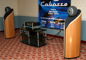 The excellent reputation of Balanced Audio Technology (BAT) in the preamp- and amp-manufacturing domain is well known. On exhibit was the new VK-75SE amp ($8500 USD) together with their VK-51SE preamp ($8500 USD plus $500 for the remote option) and VK-D5SE CD player ($6000 USD). These were mated to a pair of modestly priced Audes Blues loudspeakers, which hail from Estonia and will set you back a mere $2100 USD. Musician and sales director Geoffrey Poor of BAT acted as master of ceremonies, explaining that the 6H30 "supertube" was considered the most linear tube available by BAT chief designer Victor Khomenko and is used in the gain stages of most BAT equipment. In case you havent been reading your Pravda lately, the 6H30 was recently declassified by the Russian government and has gone into current production. Output tubes on the VK-75SE are the squat, dual-nippled 6E33Bs driven, in a balanced configuration of course, by BATs special circlotron topology. What do I have to say about the sound in this small room? How about stupendous, exhilarating, and irresistible? I would also venture liquid, coherent, and natural. The side-firing bass emanating from those Baltic beauties rocked my world, as did overall tonal accuracy, imaging, and high-frequency purity. Apart from a touch of midrange compression, this system produced unimpeachable sound and was deserving of the coveted Ultra Audio System Award, 1st Place. The visually imposing Beauhorn single-driver speakers ($6000 USD) were exhibited together with electronics from Manley. Manley gear boasts unmistakably retro styling with generously vented gunmetal chassis and an oversized logo. The Neo Classic SP/PP 300 B single-ended amp, priced at $7200 USD, was on display. Down the hall, the tri-nipple 6C33 output tube again appeared in the shiny-chromed cages of the Phoenix Acoustics Corporation SE15 Revelation monoblock amplifiers ($8500 USD). Finally, Oracle Audio Technologies designer Jacques Riendeau showed off his companys prototype for a radical re-entry into the speaker market. The new model is a non-conventional two-way, in which the main driver is a custom Supravox 8.5" full-range driver that crosses over to a Phillips ribbon tweeter at around 6kHz. An internal transmission line vents out of the upper rear to reinforce bass frequencies. Estimated retail for the speaker is $12,500 USD. The system was driven by the modestly priced Stello line of Oracle electronics (CDA200 CD player, $2750 USD and AI300 150W integrated amp, $3250 USD). Despite a few quibbles in the midrange, there were signs of potential greatness from this refreshingly original design. The high frequencies floated beguilingly over the soundstage, and the midbass region was extraordinarily transparent. I heard the woody details of a percussion instrument at the start of James Taylors "Jump Up Behind Me" (Hourglass) seemingly for the first time. Also on display were the haute gamme Delphi line of stunningly attractive products, including the venerable Mk5 turntable, granite version ($5000 USD), the non-spring-suspended version of their CD transport, the CD1000 ($4350 USD), and the CD2500 CD player ($9845 USD). 6:00 p.m. The show winds down, but I do not leave empty-handed. With the help of the brawny men of SoundStage! (thanks again, gentlemen), I make my getaway with a van full of the Acapella Violon speakers (a full review will appear on Ultra Audio just as soon as I can pick my jaw up off the floor). Wresting those pricey lassies from Vince of Tri-Cell was definitely a coup. I may not be cool, but I have giant horns in my living room that emit poison gas. For those who have not attended a show before and who cant get enough of high-end gear, make next years Festival Son et Image a priority. My thanks to all the fine folks who exhibited and took the time to chat, and congratulations to all on another fine show. ...Ross Mantle