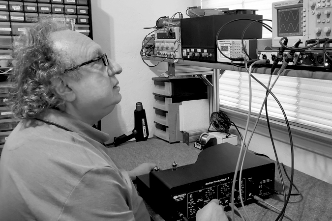 When I asked George and Carolyn Counnas how they met, Carolyn laughed. “We were both just working for a band!” she said. That was 1973. By the following year, the two were married. George grew up in southwest London, England, and he loved rock and roll and jazz, frequently catching gigs at bars. He was also technically inclined, having built a unipivot tonearm in secondary school and designed vacuum tube amplifiers on his own time while studying electrical engineering at university. Carolyn, by contrast, exhibited a more aesthetic sensibility. Her studio art background suggests that she’s far more concerned about beauty and form than function.