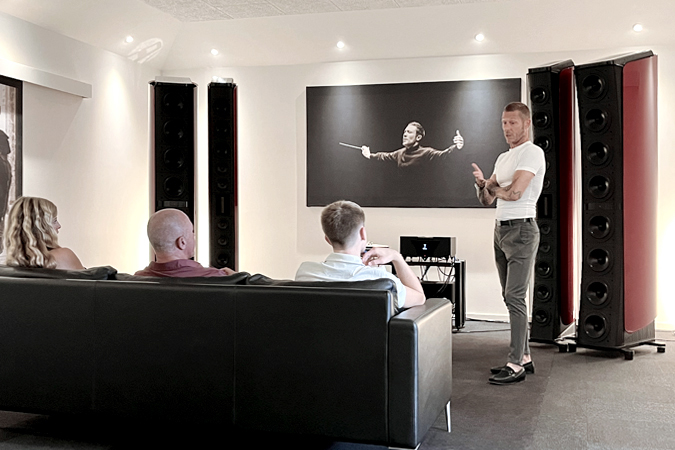 As the culmination of our July tour of the Gryphon Audio Designs facility in Aarhus, Denmark, my wife, Andrea, and I, along with Abigail and Ian, our daughter and son, entered a brand-new Gryphon listening room—a space that had recently been renovated by the company. On demo was the mighty Kodo speaker system, a four-tower design. Not only is the Kodo the flagship of Gryphon’s current speakerverse, it’s the largest loudspeaker system the company has ever produced. The ones we would be listening to were Soul Red Crystal, and they retail for $360,000 per four-tower system (all prices USD).