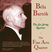 The FAQ, originally formed as a performing unit of the American Broadcasting Company in 1946, was thus contemporaneous with the revered Hollywood Quartet and achieved a similar status, but while the HSQ disbanded in 1961, the FAQ had by then established a regular concert series in Chicago, and two years later took up residence at the University of Wisconsin at Milwaukee. The FAQ recorded the Mozart and Brahms clarinet quintets with Reginald Kell for American Decca, when the group was still part of ABC, but began recording in earnest only with the creation of Concert-Tapes, the open-reel forerunner of Concert-Disc. On their own label the FAQ men recorded all the quartets of Beethoven, Brahms and Mendelssohn as well as the Bartók cycle and a good deal else -- including the Mozart Oboe Quartet with Ray Still, the same composers Horn Quintet with John Barrows, and the four Flute Quartets with Samuel Baron. The groups leader, Leonard Sorkin, was actually the engineer for some of the sessions, and some later ones were produced by the legendary Bert Whyte. The company was bought by Everest in the 1960s, and eventually the Beethoven cycle turned up on Vanguard/Everest CDs, while some of the other material was reissued on Wayne Wadhamss Boston Skyline label. What many collectors kept hoping for, though, was the Bartók cycle. Bartók was always prominent in the FAQs repertory, and for many listeners the identity of these performers with this repertory was one of those mystically "foreordained" combinations. Two of the original members -- Leonard Sorkin, the leader, and George Sopkin, the cellist -- are in the Bartók cycle, as is Abram Loft, who was still with them when the group moved to Milwaukee; at that point Irving Ilmer, the violist in the Bartók, dropped out and was replaced by Gerald Stanick, who was in turn replaced five years later by Bernard Zaslav. During the 1970s the foursome so constituted recorded several sets of Haydn quartets and all the Mozart viola quintets for Vox. (The Quintets are also available from Music & Arts now.) There were along the way recordings for American Decca, Columbia, and other labels. Today there is still a Fine Arts Quartet at Milwaukee, but it is an entirely different group, with none of the members cited above; of those in the Bartók set, only Loft and Sopkin are with us today.