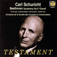 Schurichts musical sympathies were broad. Early in his career he championed Debussy, Delius and Stravinsky, and created the first Mahler Festival in Germany. He made few appearances in the US -- the St Louis SO in 1927, memorable Ravinia Festival concerts with the Chicago Symphony Orchestra in the early postwar years. He conducted concerts and recordings with the Berlin Philharmonic before he fled to Switzerland in 1944, but his reputation now rests mainly on recordings he made in the era of LP and stereo. His colleague Ernest Ansermet invited him frequently to conduct his Orchestre de la Suisse Romande, and he recorded for Decca with that orchestra as well as the Paris Conservatory Orchestra and the Vienna Philharmonic. He subsequently made some memorable recordings of Bruckner symphonies with the Philharmoniker for HMV, and recorded with some of the German radio orchestras for smaller labels. Several of Schurichts recordings have been revived on CD -- Decca, in fact, issued a five-disc set in its "Original Masters" series a few years ago -- but the Beethoven cycle he recorded with the Paris orchestra for HMV in 1957-58 was never issued in the US, or, for that matter, in Germany. The reason for this is given by Alan Sanders in his annotation for Testaments recent release of the Ninth Symphony. The series was undertaken primarily for sales in France, capitalizing on the popularity Schuricht had developed in Paris. The French werent into stereo at that time, and several of the symphonies were recorded only monophonically. Only two of the symphonies appeared in the UK in HMVs full-price line, and the rest came out there on Concert Classics, a low-priced label created at the end of the 1950s. The Ninth Symphony, however, was one of the few recorded in stereo, and for these sessions, in May 1958, HMV did not rely on the facilities available in Paris, but sent its own first-line production team and equipment from London. Victor Olof and Eric Macleod were the producers (Olof subsequently produced Schurichts splendid Bruckner Ninth in Vienna), and Christopher Parker was the engineer; as the Testament CD makes clear, their stereophonic recording of the Ninth turned out to be one of the most successful early-stereo efforts in continental Europe, its spaciousness and detail every bit a match and then some for what RCA Victor was doing in Chicago and Boston, and Decca in its familiar British and European haunts.