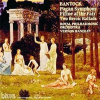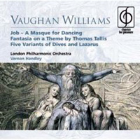 From Handleys coverage of music of Ralph Vaughan Williams, four EMI Eminence CDs call for special attention. Two are with the LPO: Job: a Masque for Dancing, EMI CDM 7 62016 2; The Lark Ascending (David Nolan, violin), Five Variants of "Dives and Lazarus" and the "Aristophanic Suite from The Wasps, EMI CDM 7 62018 2. And two with the Royal Liverpool Philharmonic: Symphony No.5 and Flos Campi (with Christopher Balmer, viola, and the Liverpool Philharmonic Choir), EMI CDM 7 62029 2; an assortment of brief works mostly for strings -- Partita, Oboe Concerto, Tallis Fantasia, English Folk Songs Suite, Fantasia on "Greensleeves" EMI CDM 7 64114 2. Finally, by way of demonstrating Handleys similarly persuasive way with music from outside Britain, John Fernströms Twelfth Symphony and Dvoráks Biblical Songs, with the Malmö SO (Birgit Finnilä, alto, in the Dvorák), BIG BEN (611) 861-006, and a warm-hearted Grieg collection with the Ulster Orchestra (Peer Gynt Suite No.1; Two Elegiac Melodies, Sigurd Jorsalfar Suite, Symphonic Dances), CHAN 8524, that is by no means overshadowed by the same labels subsequent offering of the two least-known of these titles with Rozhdestvensky and the Royal Stockholm PO. . . . Richard Freed