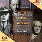 The Britten and Bartók works have been recorded often, but as far as I can ascertain, this is the first time theyve been paired on disc. The coupling makes sense -- both were written in the late 1930s, just before World War II. Pentatone has also generously thrown in Karl Amadeus Hartmanns Concerto funčbre for Violin & Orchestra, also composed in that period. The Britten and Bartók are extroverted pieces full of energy and high spirits. The Hartmann is contemplative and introspective, a somewhat sad commentary on the composers situation as a German facing Hitlers rise to power. Hartmann would not allow any of his music to be played in Germany until the war was over. The Netherlands Chamber Orchestra is a first-rate group, and leader Gordan Nikolic gets to the heart of each piece. His performances are lyrical and energetic without frivolity, and the string sound benefits greatly from being presented in the SACD format. The upper violins are bright, with natural edge yet no harshness, while the lower strings have excellent focus and splendid tone. The surround channels add just the right amount of hall reverberation to give the overall sound pleasant amounts of warmth and presence.