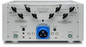 The insides are marvelously clean in appearance. Running from fore to aft and bolted to the bottom plate is a black enclosure that houses two potted 1500VA toroidal transformers. The 56 bipolar output devices (28 per channel) are sandwiched to the heatsinks with an aluminum bar and an unspecified damping material. Mounted very close these output devices are 48 (24 per side) filter capacitors. Theres virtually no internal wiring in the 1060; the exception to this is the output stages connection to the two sets of custom binding posts. Here, youll find a large-diameter silver braid soldered to polished gold-plated brass bus bars that couple the output posts to each other. The 1060, like the 1010, uses micro-circuitry throughout. This effectively reduces the signal-path length due to the densely packed nature of the technique. Smaller parts mean smaller boards and a shorter path. Boulders products are separated into two price tiers: the 1000 series, of which the 1010 and 1060 are central, and the 2000 series, roughly double the price of each corresponding 1000-series product. The 2000 series is, as you would expect, more expensive to produce. For example, the 1060s big 600Wpc brother, the 2060, incorporates Boulders more costly discrete 993 gain stage. The 1060 uses a micro version, the 983. The 1000 series does trump its larger brethren in the dovetailed, channeled chassis construction. The 2000s use, in part, more conventional methods for securing panels together, and to me they are not as visually appealing. The Boulderlink Although the 1000 series is a few years old, the operating system used for integrating the components is more advanced than that of almost any other product line Ive seen (although Gryphon does offer a similar, if not quite as comprehensive, setup). A custom connecting cable, bought from your Boulder dealer, allows the microprocessors within 1060 and 1010 to speak to one another. The 1010 will turn on the 1060, or multiple Boulder amps if you have them, in any sequence and at whatever intervals you choose. The 1010 also monitors the 1060s operational status. Is the amplifier clipping (either voltage or current), overheating, or is there a protection fault? Youll be notified via the 1010s readout so you know exactly what action to take. You can almost think of the 1010/1060 combination as a 175-pound integrated amplifier: once the amp and preamp are connected, you interface with the 1010 alone. Performance