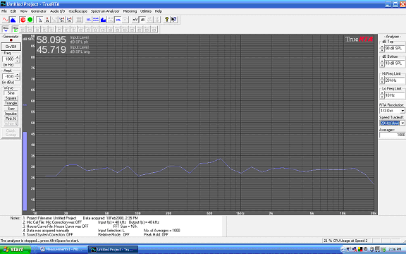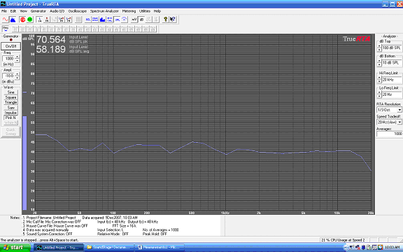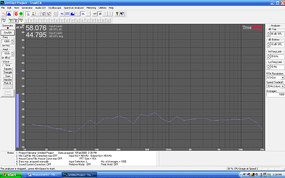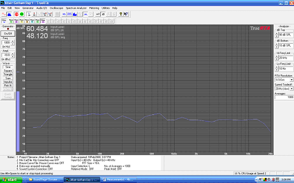 The Gothams exterior finish is a classy automotive-type gloss that comes only in black. The g213 is large but not unmanageable at 34.13"H x 21.50"W x 24"D, but at 360 pounds, it requires some wrestling to get it into place. JL Audio sent me two of them. Test equipment and experimentation Having spent many months working on integrating subwoofers into several very-high-end two-channel audio systems, Ive become convinced that, to do this with any reasonable degree of success, you need some basic test equipment. Tuning a sub by ear while listening to music just wont get the job done right. By its very nature, music is a collection of individual frequencies -- and that leads to unknowns. For example, if theres a deep but narrow trough in your bass response at exactly 60Hz, the music you play while adjusting the subs response must have constant content at that frequency, and you must be able to identify that frequency by ear. This is next to impossible, even for the best ears out there. A better method is to look at a frequency-response graph; there, your results, including that 60Hz trough, will be instantly visible. Later, you can verify your results by ear while listening to music. This is what I do. What you need to get started: a reliable microphone (I use a relatively inexpensive Behringer ECM8000, which can be found in most local music stores) and a real-time spectrum analyzer. For the latter I use TrueRTA, a program from True Audio thats available for a reasonable sum as a download from their website (the full-featured, Level 4 version costs $100). This setup allows me to capture extremely accurate frequency-response graphs that I have found invaluable in the calibration process. If you dont have such a setup, get it before you buy a subwoofer. Itll cost you only about $200, assuming you already have a computer that you can use in your listening room. When youre ready to begin, expect to spend lots of time moving the subwoofer about, measuring its position in the room with a tape measure (explained below), measuring its acoustic response with your test setup, listening to music and pink noise, then starting all over again -- again and again. My advice is to get a buddy to help you, order a pizza, put on a pot of coffee, and settle in for a long afternoon of subwoofing. Good bass takes a while. Two subwoofers and phase Ill begin by sharing with you a few opinions Ive formed during the course of my subwoofing sojourn. First, you need a minimum of two subwoofers. Two, three, or four subwoofers load a room with bass more evenly than will a single sub. Read "Subwoofers: Optimum Number and Locations," an article by Harman Internationals Todd Welti, which describes why multiple subs work better than a single sub in real rooms. I am an advocate of pairing one subwoofer with each of the left and right speakers in a stereo system. The folks at JL Audio have come to the same conclusion. So, to be clear: from here on, Im talking about a left and a right speaker-sub tandem. The two subwoofers are run in mono. A primary concern in integrating subwoofers into a stereo system, as opposed to a home theater, is the phase relationship between each subwoofer and the partnering main speaker. (The other, of course, is the positions of the subs and speakers in the room.) A subwoofer whose sole job is to reproduce the low-frequency effects (LFE) channel of film soundtracks has a fundamentally different purpose. The ".1" LFE channel of a 5.1-channel soundtrack is a dedicated signal containing its own low-frequency material. Conversely, a subwoofer(s) in a music system is reproducing the bottommost frequencies of the stereo signal (stereo would be 2.0 even with subwoofers, the "2" being the left and right channels). Fortunately for the home-theater enthusiast, the .1 channel in a home theater makes things much simpler. If you have full-range speakers in your theater, the mains are reproducing two channels of information (left and right), whereas the subwoofer is reproducing its own dedicated channel. In that instance, theres no specific crossover frequency where the subwoofers output overlaps the main speakers output: with a 50Hz crossover, for instance, the main speakers would still produce some sound under 50Hz and the subwoofer would produce some sound above 50Hz. This will become important in the discussion of phase below. Therefore, the primary concern in a home theater is the subs placement in the room, as that will dictate, to a large degree, what the listener hears. But a subwoofer being integrated into a stereo system cant just be plopped in a corner without some thought being given to how that will affect its phase relationship with the main speakers; again, they will be sharing some of the same program material. This leads us to the issue of phase integration, and what it means in the context of a subwoofer-satellite system. The most important thing to remember is that the subwoofers output must be in acoustical phase with the main speakers output. What is acoustical phase? One excellent definition I found, in a Wikipedia Learning entry, states it this way: "This term refers to the time relationship between two or more sound waves at a given point in their cycles. Two waves are said to be in phase if two identical waves begin their excursions at the same time. Waves are out of phase if two identical waves begin their excursions at different times." Think of two speaker drivers producing the same frequency: they push out into free air, then pull back to their stopped positions. When wired in phase, the two drivers will push out and pull back at precisely the same times. Conversely, if one driver is wired 180 degrees out of phase to the other, it will push out at exactly the same moment the other pulls back to its stopped position. When the subwoofer and main speaker are operating in phase, their outputs will sum and, hopefully, produce a relatively flat frequency response. If their outputs are not in