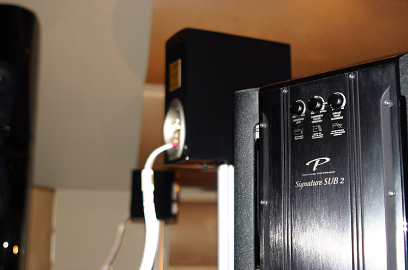10" drivers, two on each of three sides; and Paradigms Ultra-Class-D amplifier,